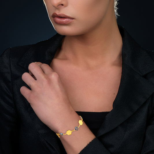 Minimal 18K Gold Over Brass Gemstone Bar Bracelet – Handmade Jewelry TGB1007 BM-1055