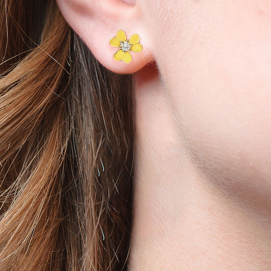 18K Gold Plated Brass Gemstone Flower Stud Earrings, Trendy Style TGE1038 EM-1292