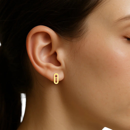18K Gold Plated Brass Jewelry Oval Gemstone Studs, Minimalist Everyday TGE1041 EM-1296
