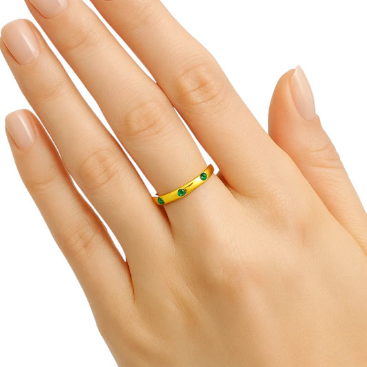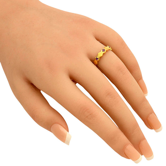 18K Gold Plated Crown Five-Stone Ring – Dainty Gemstone Stacking Band TGR1059 RM-1782