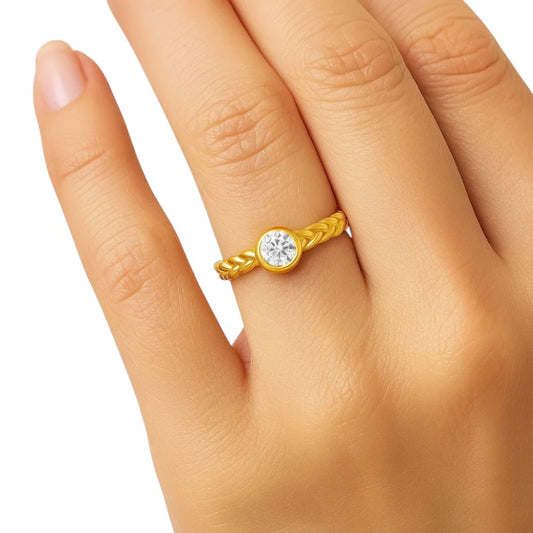 18K Gold Plated Brass Faceted Round Stone Ring – Simple Modern Look TGR1026 RM-1753