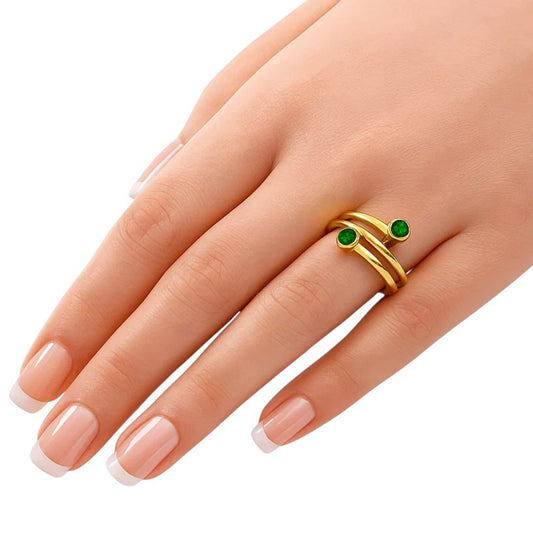 18K Gold Plated Spiral Wrap Double Stone Adjustable Minimalist Ring TGR1063 RM-1185