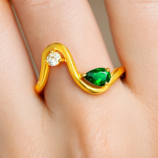 18K Gold Plated Dual Gemstone Pear Cut Stacking Ring – Modern Design TGR1067 RM-1790