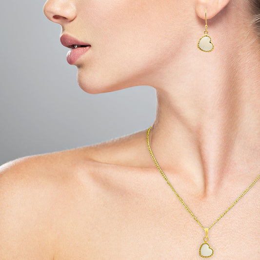 18K Gold Over Brass Mother Of Pearl and Green Onyx Necklace Earrings Set TT01019