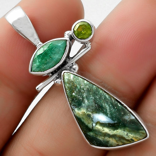 Larsonite Jasper, Emerald Quartz & Peridot Pendant P-1708 SDP109564