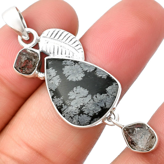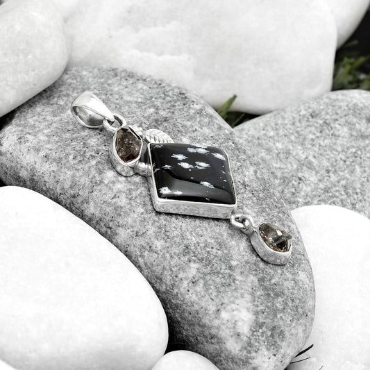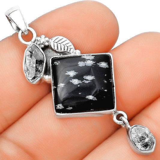 Snow Flake Obsidian & Herkimer Diamond Pendant P-1693 SDP114646