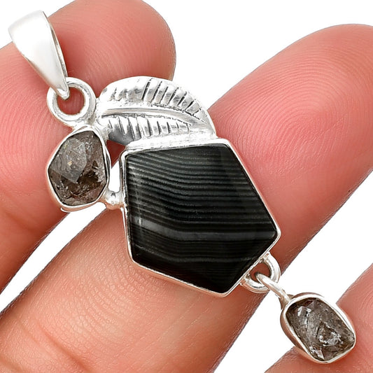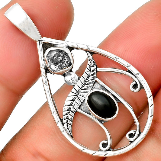 Black Onyx Brazil & Herkimer Diamond Pendant P-1376 SDP133105