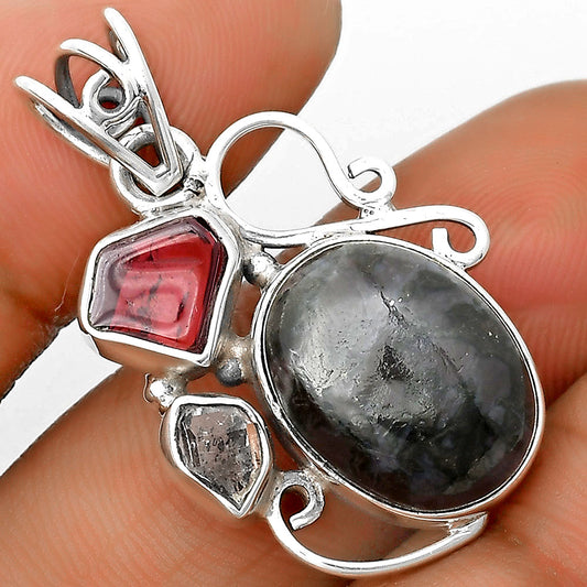 Indigo Gabbro, Herkimer Diamond & Garnet Pendant P-1203 SDP127758
