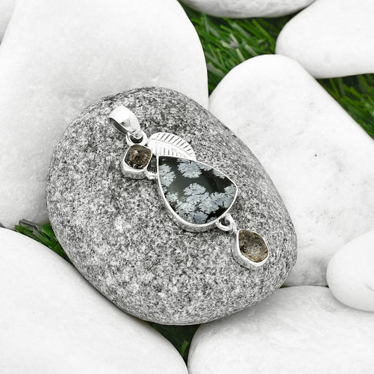 Snow Flake Obsidian & Herkimer Diamond Pendant P-1046 SDP120353