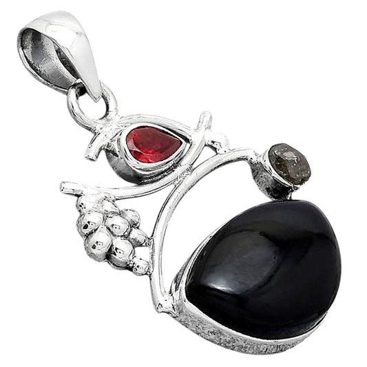 Tektite Cab, Garnet & Herkimer Diamond Pendant P-1704 SDP154241