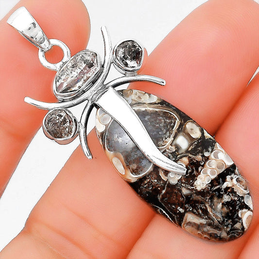 Flower Fossil Coral & Herkimer Diamond Pendant P-1545 SDP126063