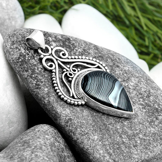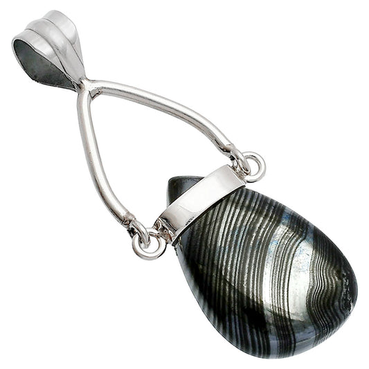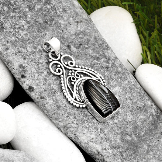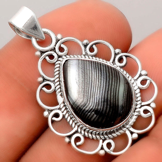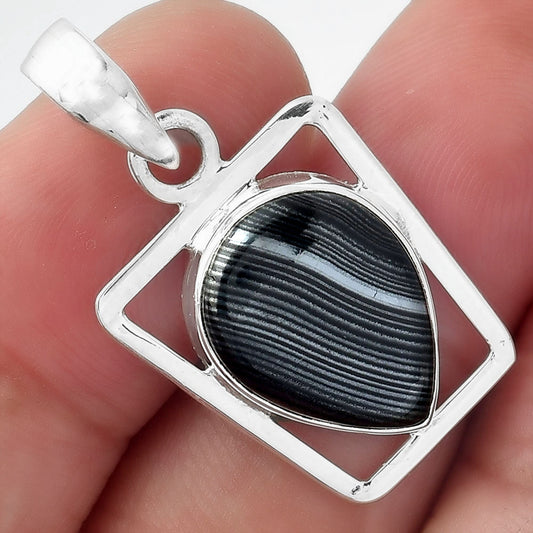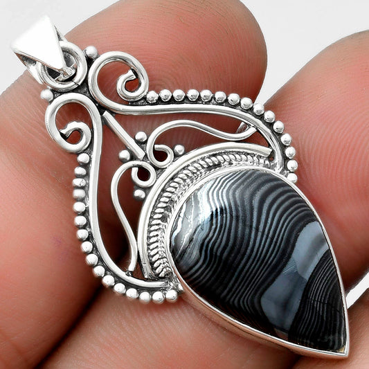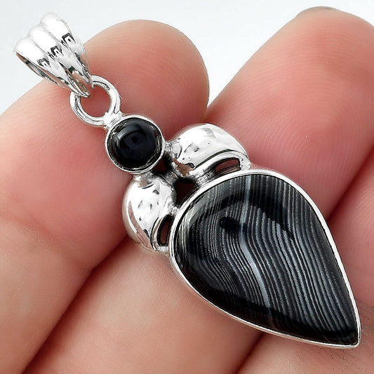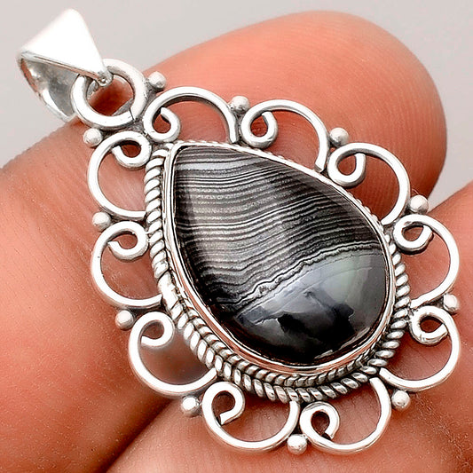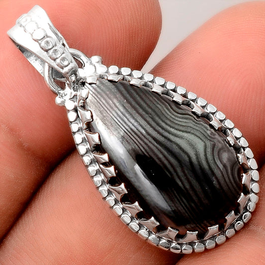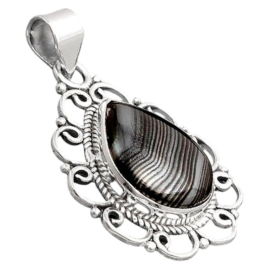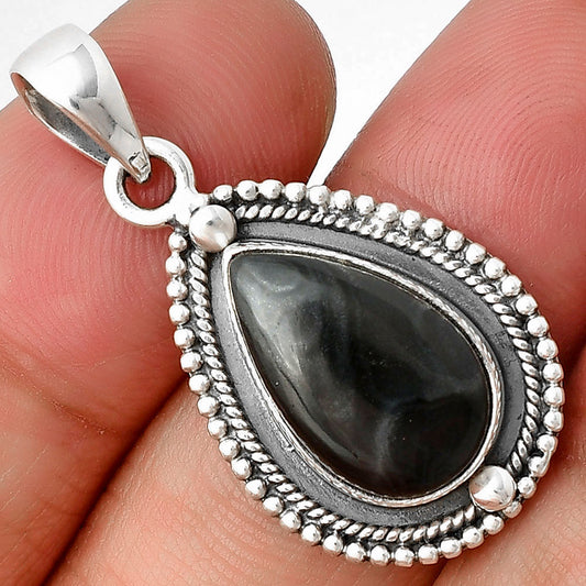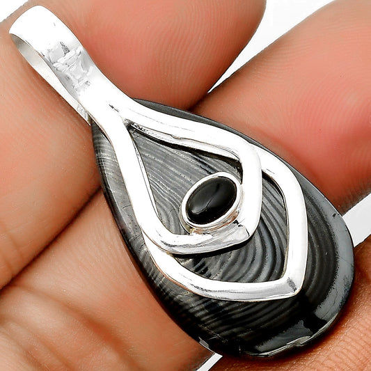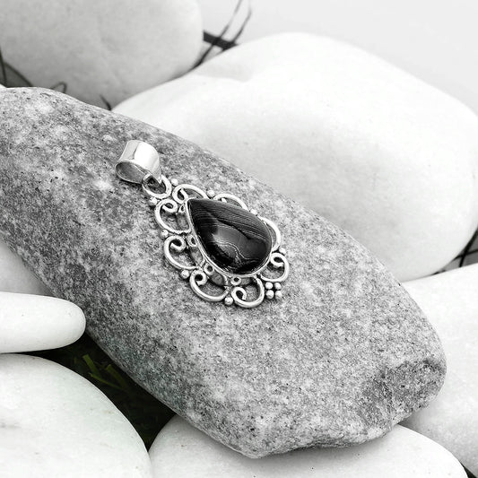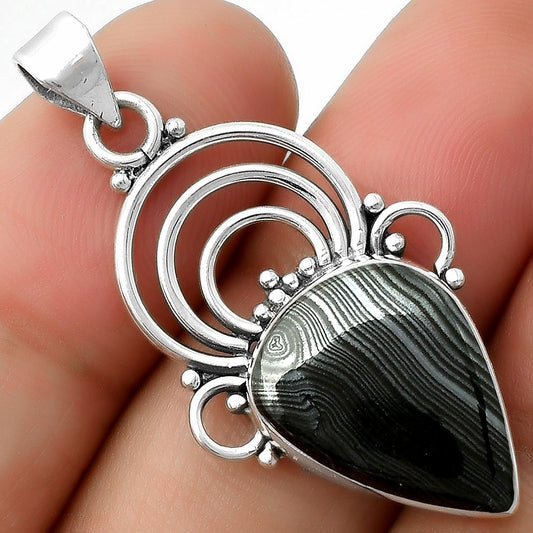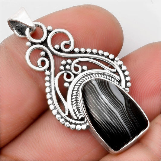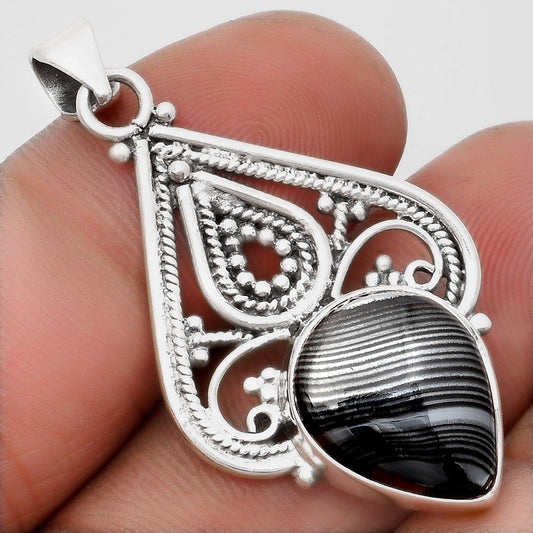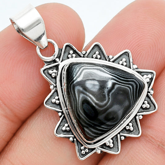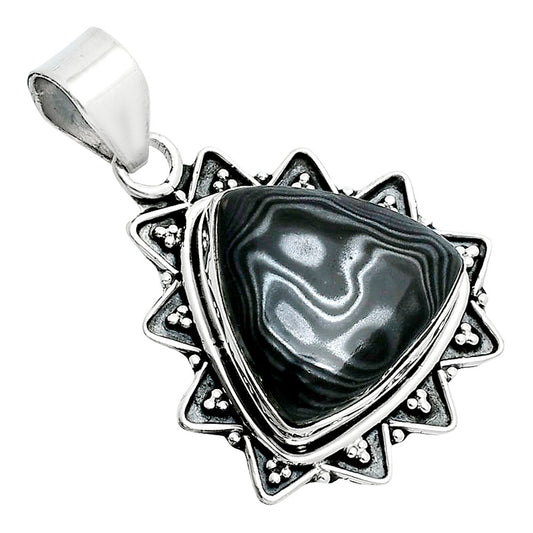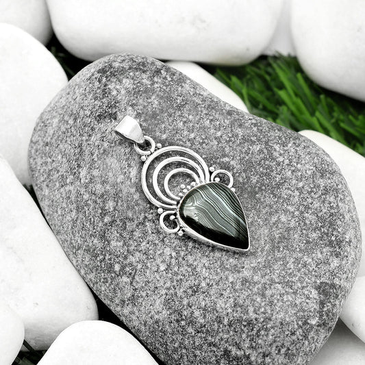 Crown Of Silver Psilomelane Black Malachite & Black Onyx Silver Pendant P-1243 SDP113276