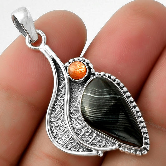 Crown Of Silver Psilomelane Black Malachite & Sunstone Pendant P-1467 SDP109643