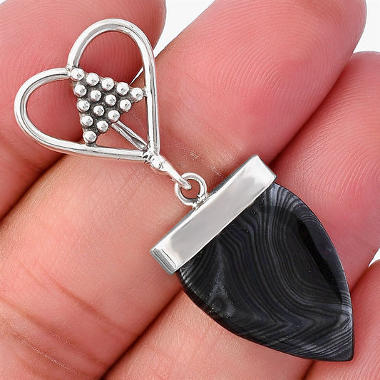 Heart - Crown Of Silver Psilomelane - Black Malachite Pendant P-1721 SDP141697