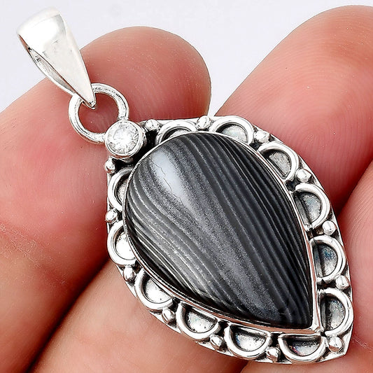 Star Crown Of Silver Black Malachite & White Zircon Pendant P-1095 SDP107504