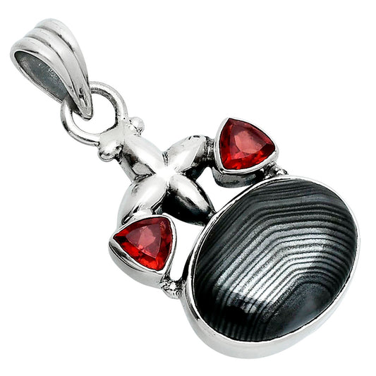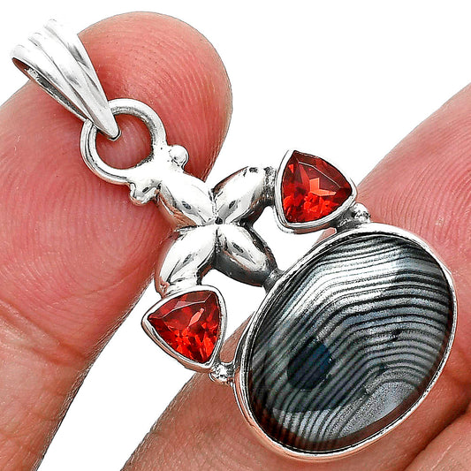 Crown Of Silver Psilomelane Black Malachite and Garnet Pendant P-1434 SDP155930