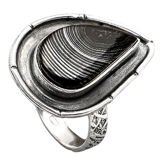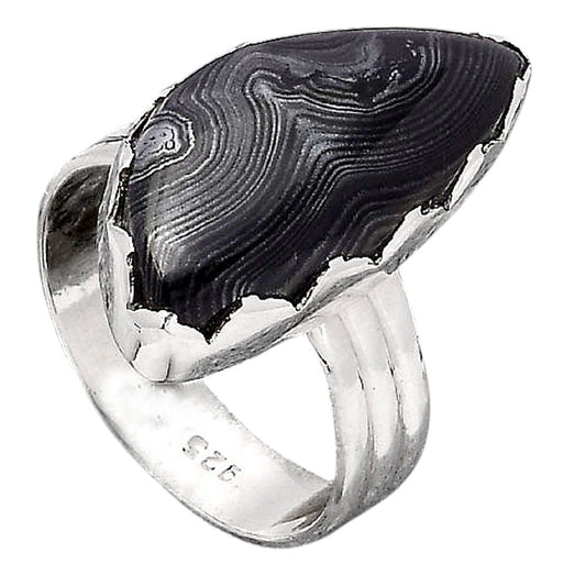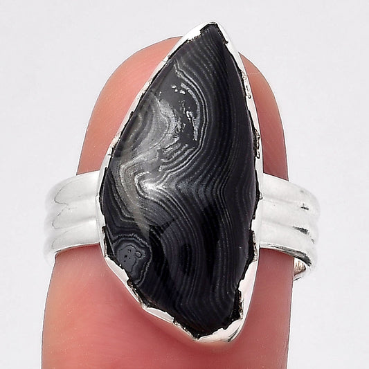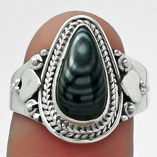 Crown Of Silver Psilomelane Black Malachite Ring size-8.5 R-1501 SDR154492