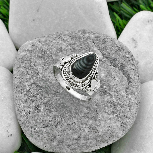 Crown Of Silver Psilomelane - Black Malachite Ring size-8 R-1497 SDR168305