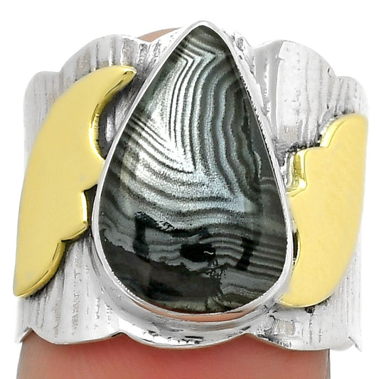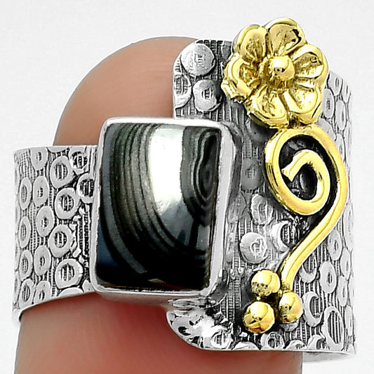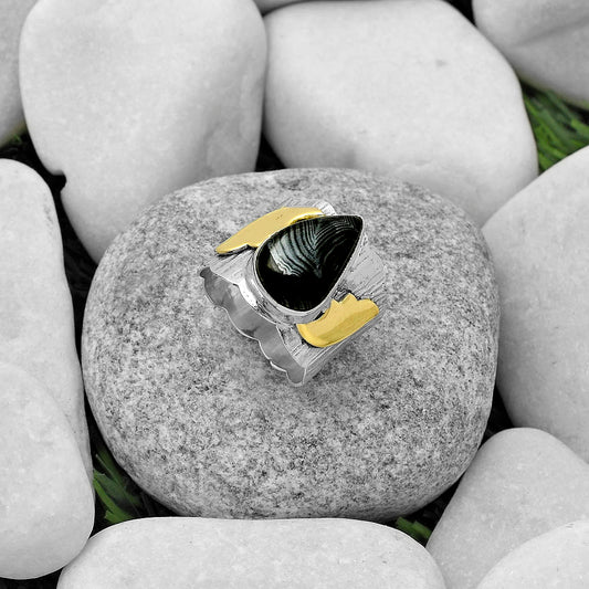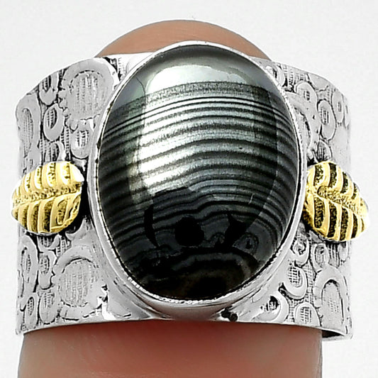 Two Tone Crown Of Silver Psilomelane Black Malachite Ring size-8 R-1534 SDR161418