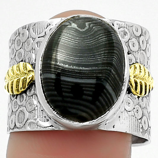 Two Tone Crown Of Silver Psilomelane Black Malachite Silver Ring size-8.5 R-1681 SDR161328