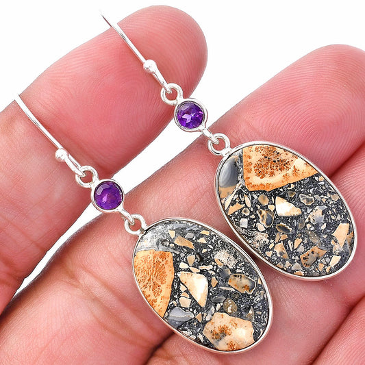 Natural Maligano Jasper & Amethyst Earrings E-1002 SDE84065