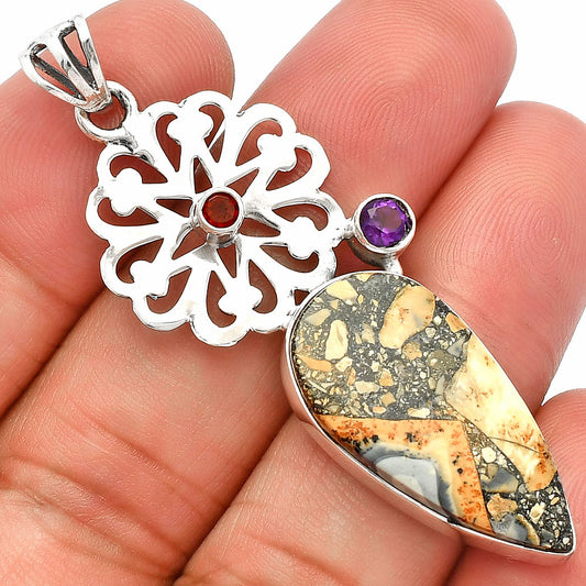 Maligano Jasper, Amethyst & Garnet Pendant P-1290 SDP147315