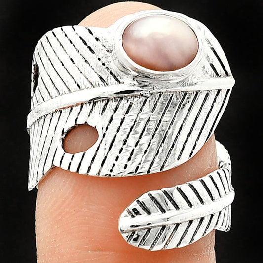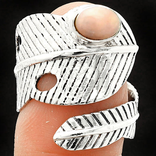 Adjustable Feather - Pink Opal Ring size-8 R-1473 SDR237056