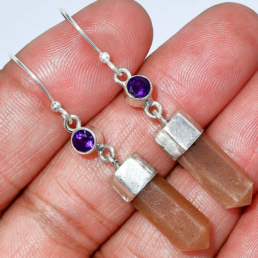 Point - Natural Sunstone & Amethyst Earrings E-1135 SDE86002