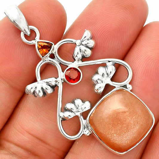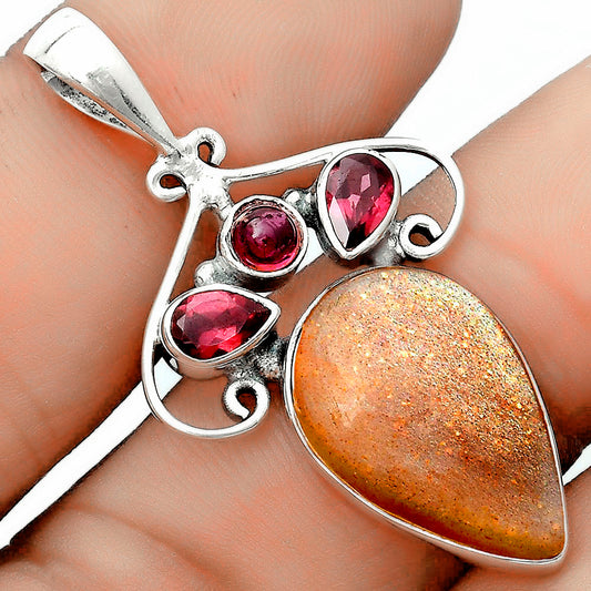 Natural Sunstone - Namibia & Garnet Pendant P-1244 SDP123692