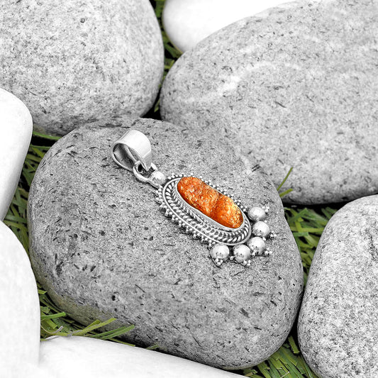 Natural Sunstone Rough & Carnelian Pendant P-1337 SDP127597