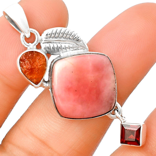 Guava Quartz, Sunstone Rough & Garnet Pendant P-1414 SDP137736
