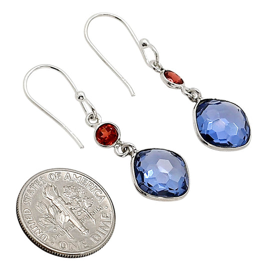 Tanzanite Checker Briolette and Garnet Earrings E-1006 SDE91797