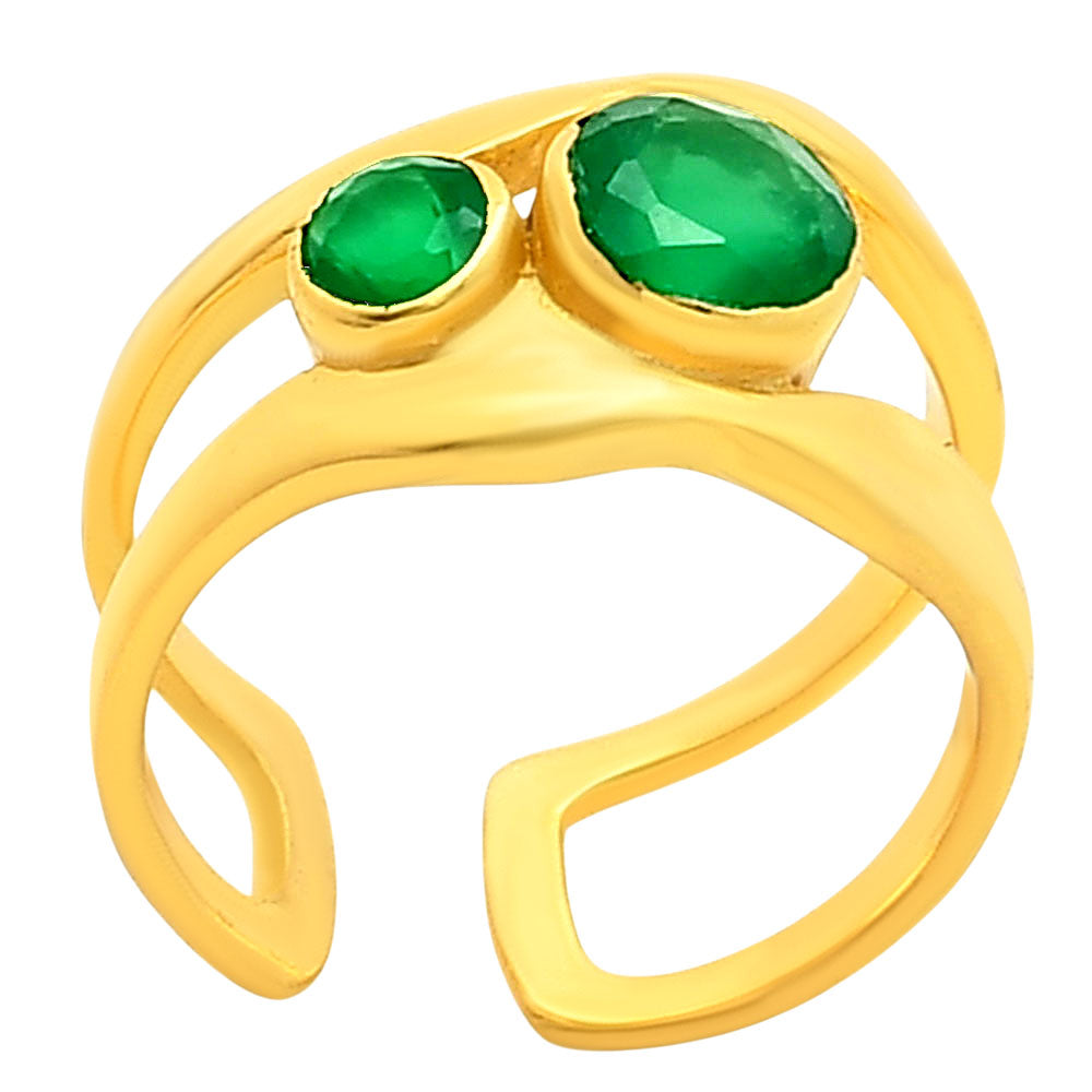 18K Gold Over Brass Double Round Green onyx/Amethyst Wrap Ring for Women TGR1017 RM-1752
