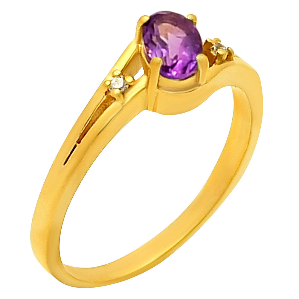 18K Gold Over Brass Oval Gemstone Ring with Side CZ Accent Stones TGR1034 RM-1765