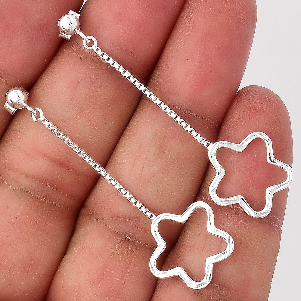 | 925 Sterling Silver Long Flower Dangle Earrings – Lightweight Design DGE1044 |