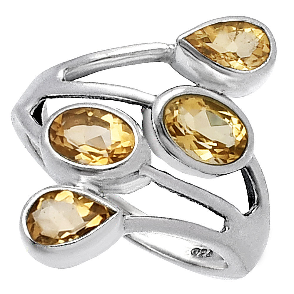 925 Sterling Silver Natural Multi Gemstone Ring with Oval & Pear Stones DGR1133 R-1053