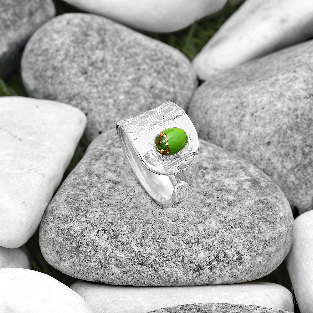 Adjustable - Copper Green Turquoise Ring size-7 R-1319 SDR187145
