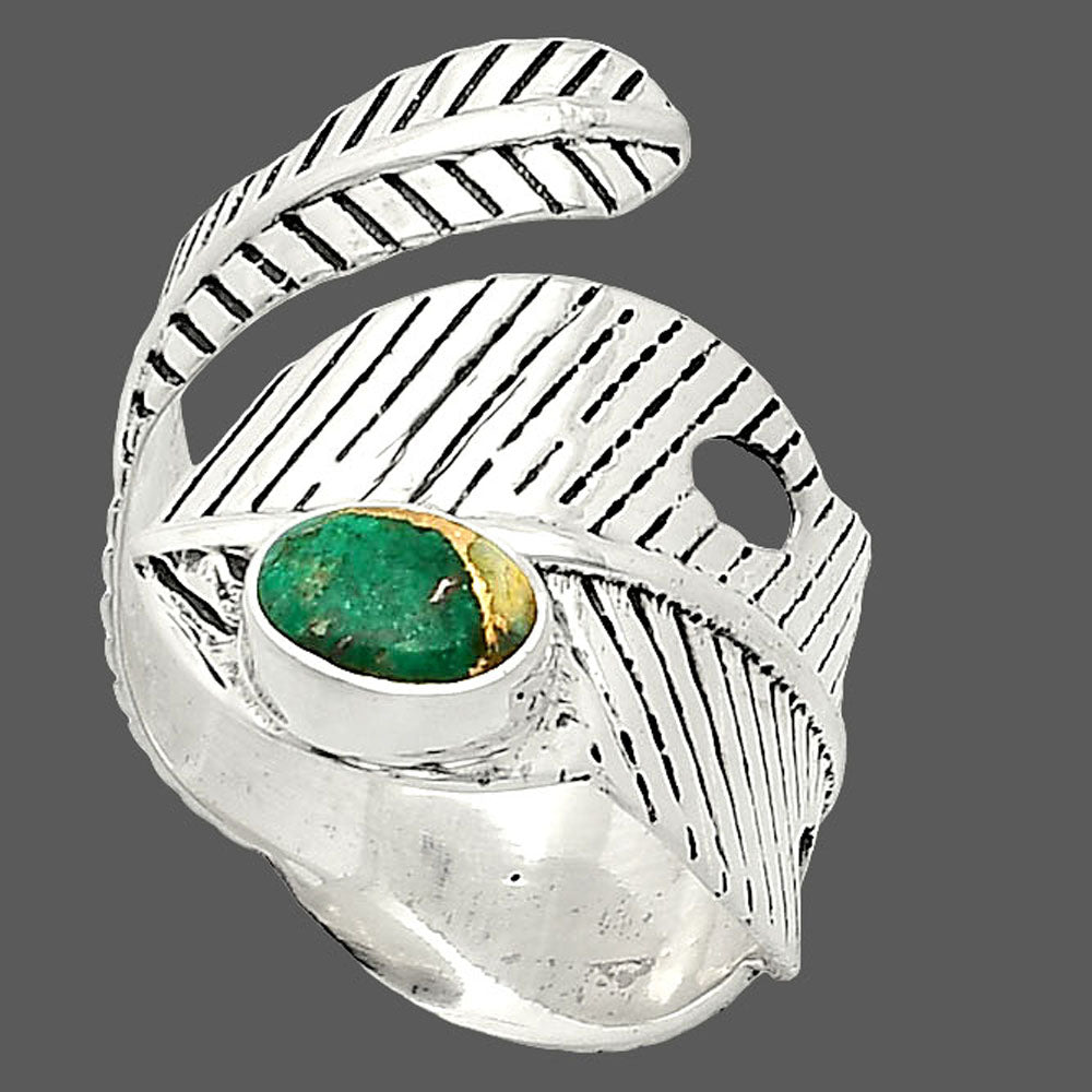 Adjustable Feather - Kingman Copper Teal Turquoise Ring size-8 R-1473 SDR237036
