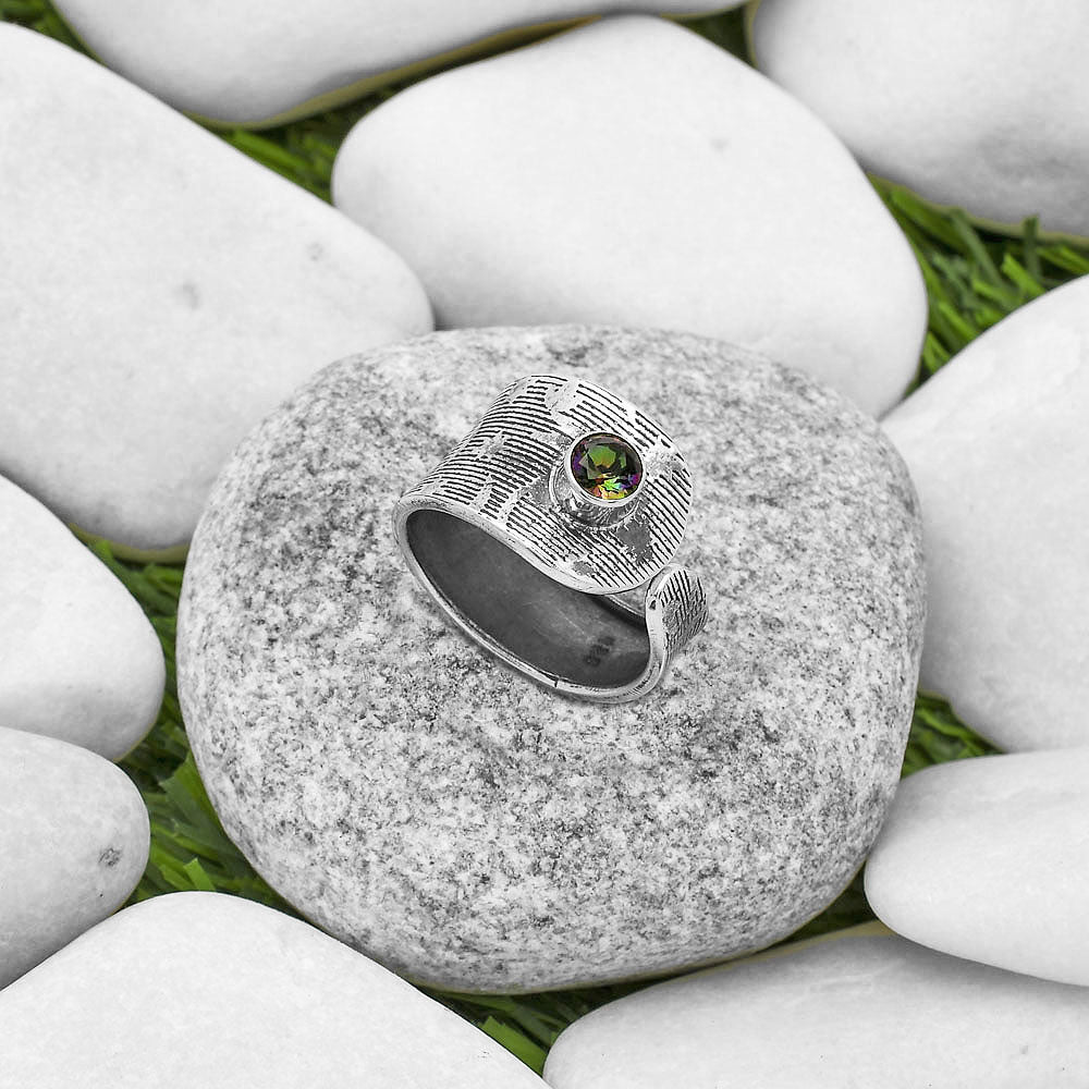 Adjustable - Natural Mystic Topaz Ring size-7.5 R-1319 SDR170043