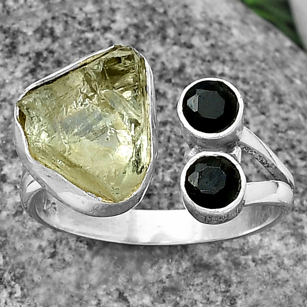 Adjustable - Prasiolite Rough & Black Onyx Ring size-7 R-1243 SDR206942