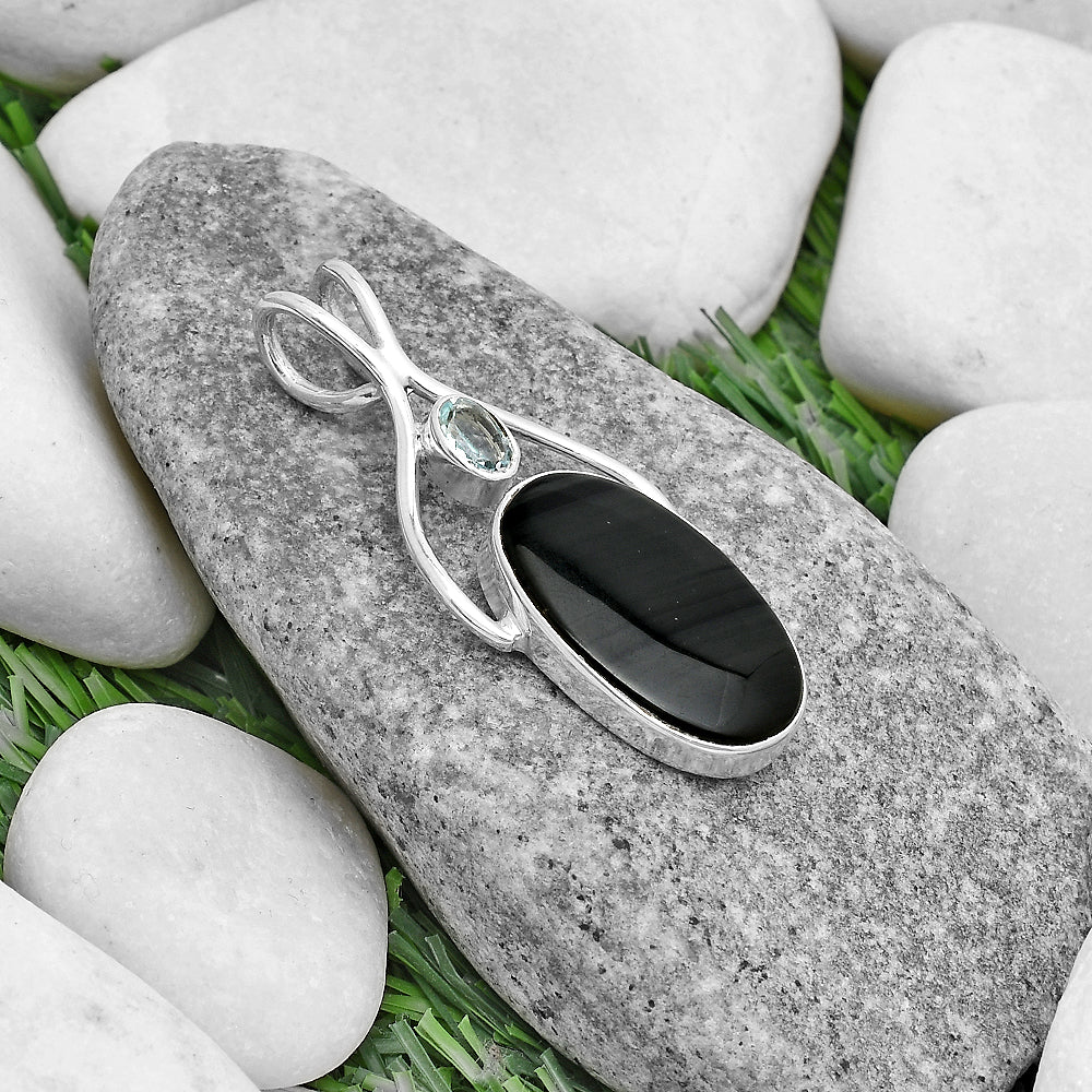 Black Lace Obsidian & Sky Blue Topaz Pendant P-1038 SDP120675