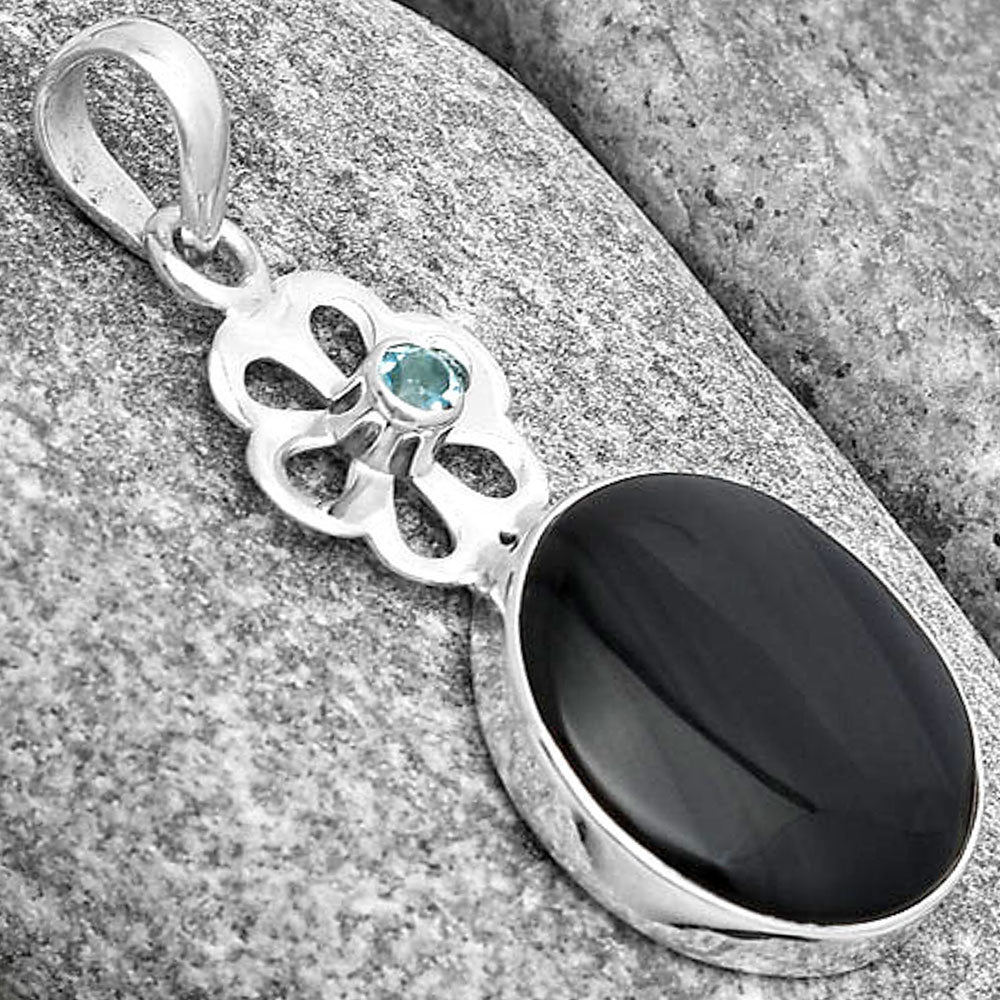 Black Lace Obsidian & Sky Blue Topaz Pendant P-1634 SDP128951