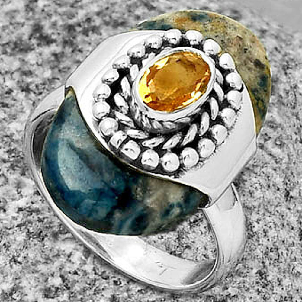 Blue Scheelite - Turkey & Citrine Ring size-6 R-1371 SDR192416