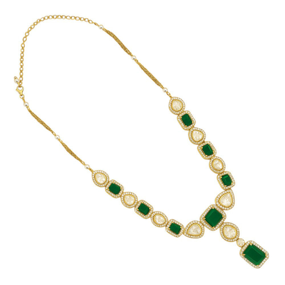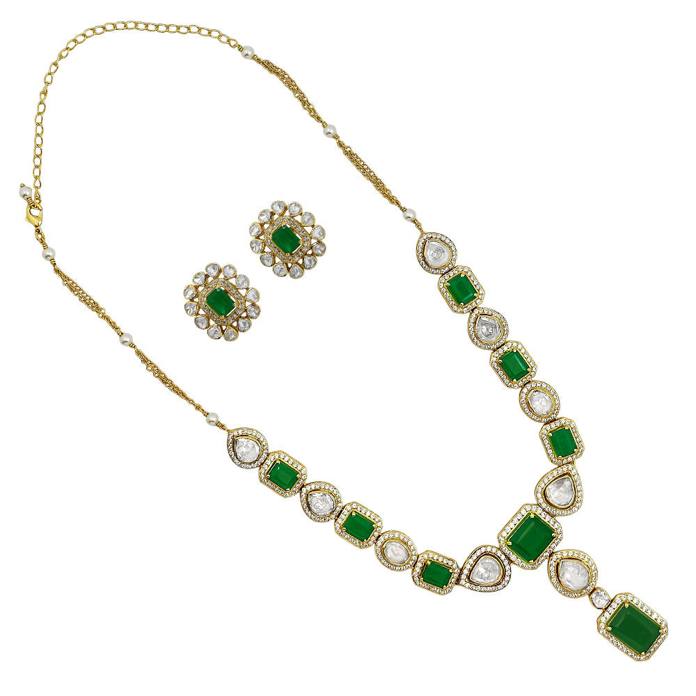 Bridal Kundan Polki Green Necklace Earrings Set 18K Gold Plated Jewelry PGT1001
