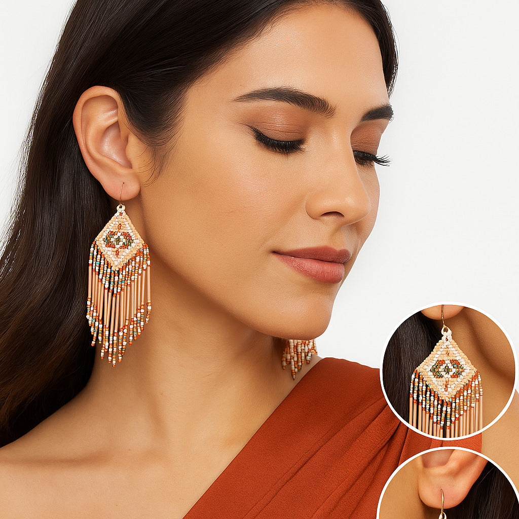 Colorful Beaded Earrings,Hook Dangle Earrings, Bohemia Boho Tassel Earrings FER1034