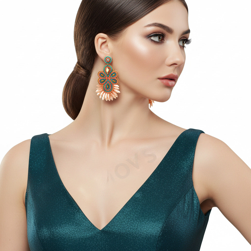 Colorful Beaded Earrings,Hoop Dangle Earrings, Bohemia Boho Tassel Earrings FER1010