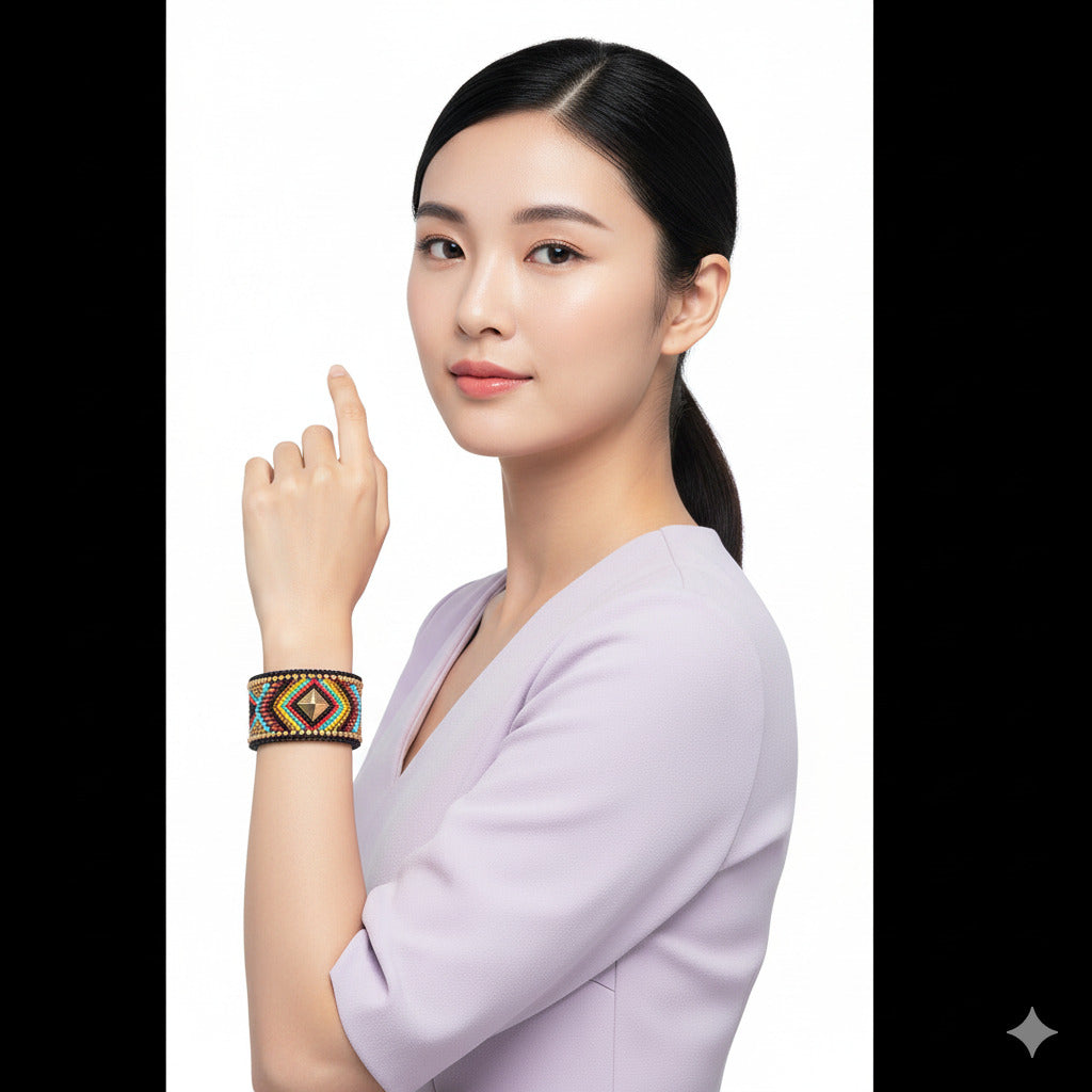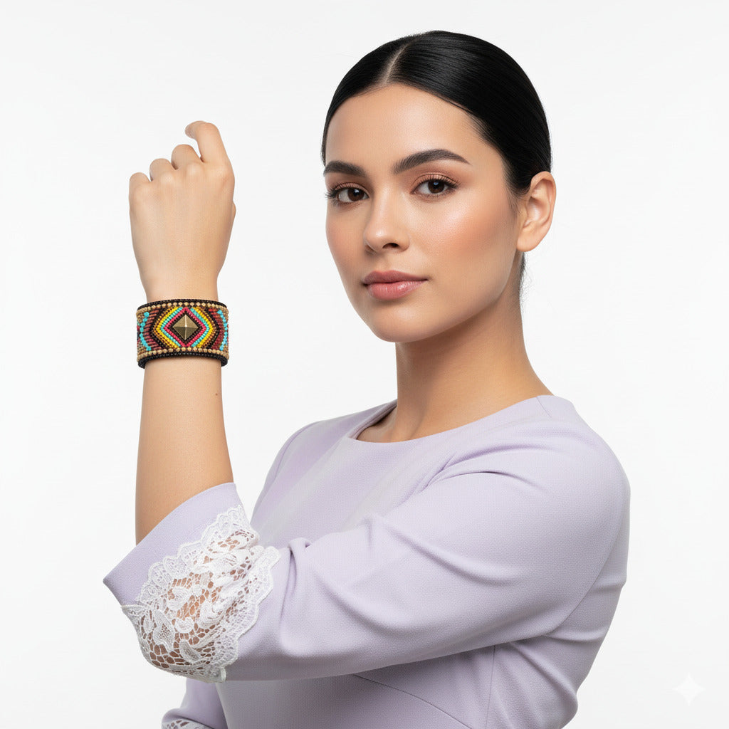 Colorful Bohemian Boho Seed Bead Loom Bracelet, Ethnic Large Cuff Bracelets For Women FBR1008