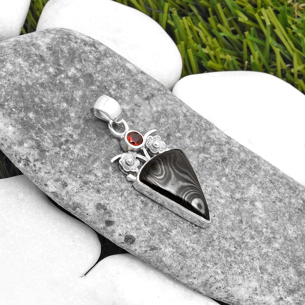 Crown Of Silver Psilomelane - Black Malachite & Garnet Pendant P-1695 SDP109771