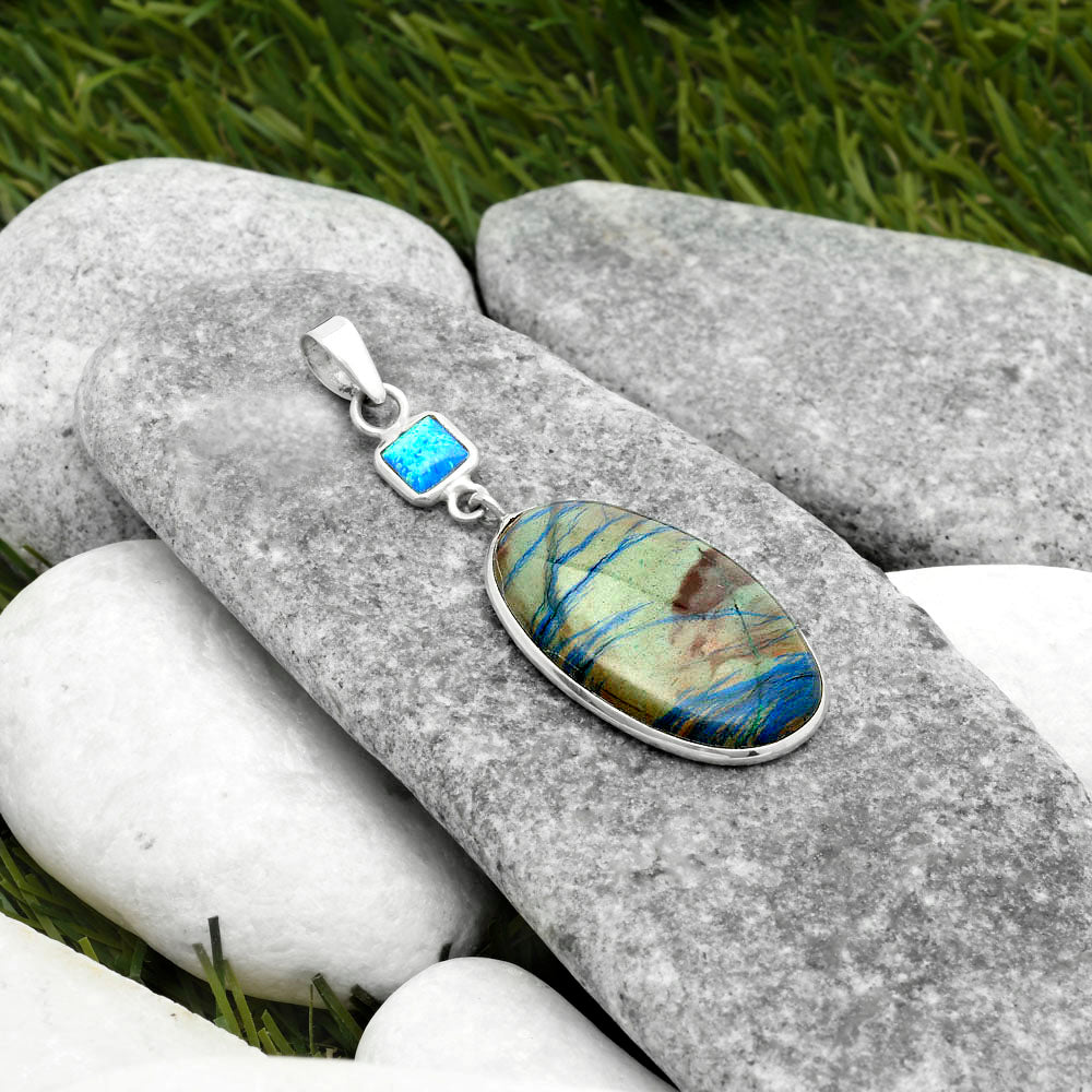 Cyber Web Chrysocolla Stone & Fire Opal Pendant P-1098 SDP115141