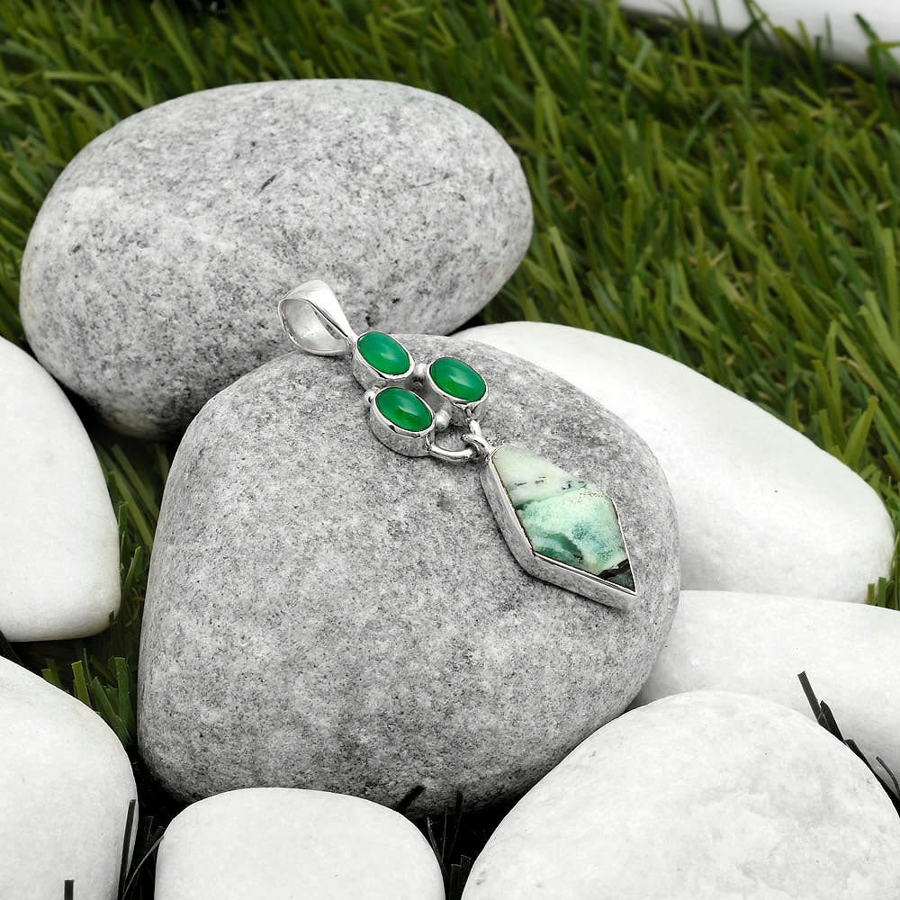 Dendritic Chrysoprase - Africa & Green Onyx Pendant P-1203 SDP114887